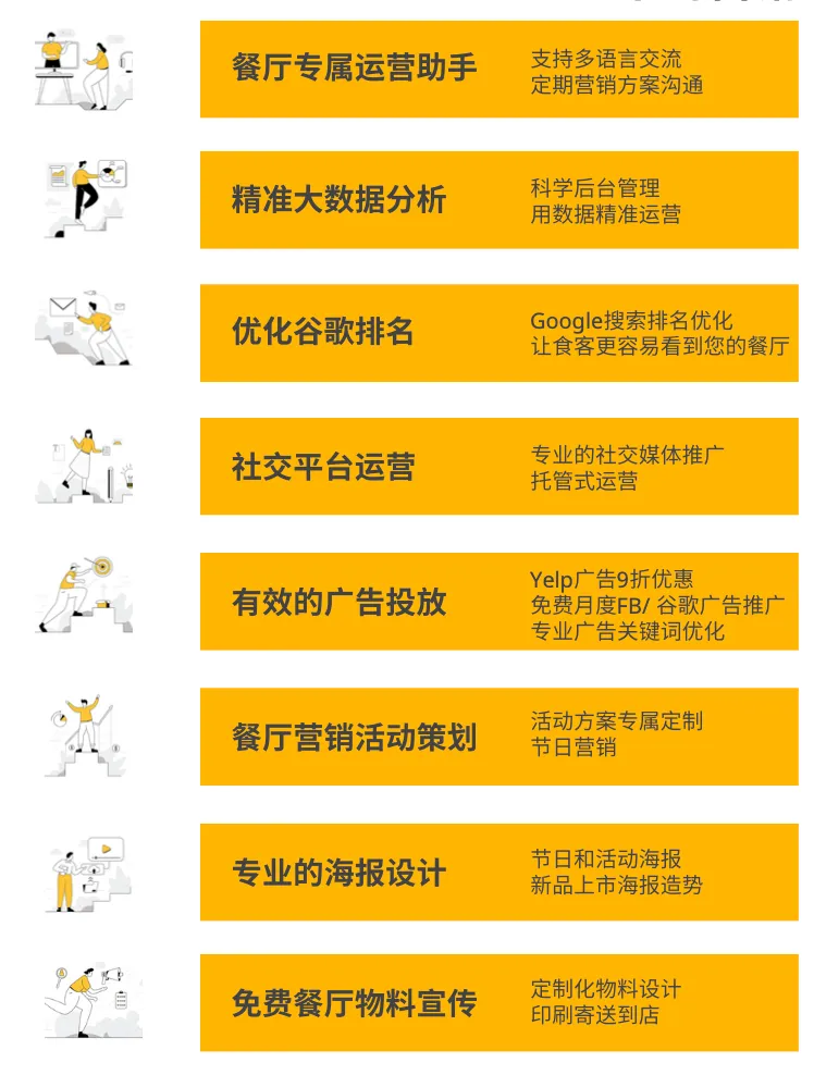 MenuSifu has a customer success team dedicated to building restaurant brand images with unique restaurant concept. We provide market marketing services and traffic operation services specifically tailored for restaurants, helping them to reach new heights! Our team offers restaurants exclusive operational assistants, trial operations of social platform management, effective advertising placements, event planning, and promotional materials to precisely target and quickly enhance brand image while staying current with social trends.