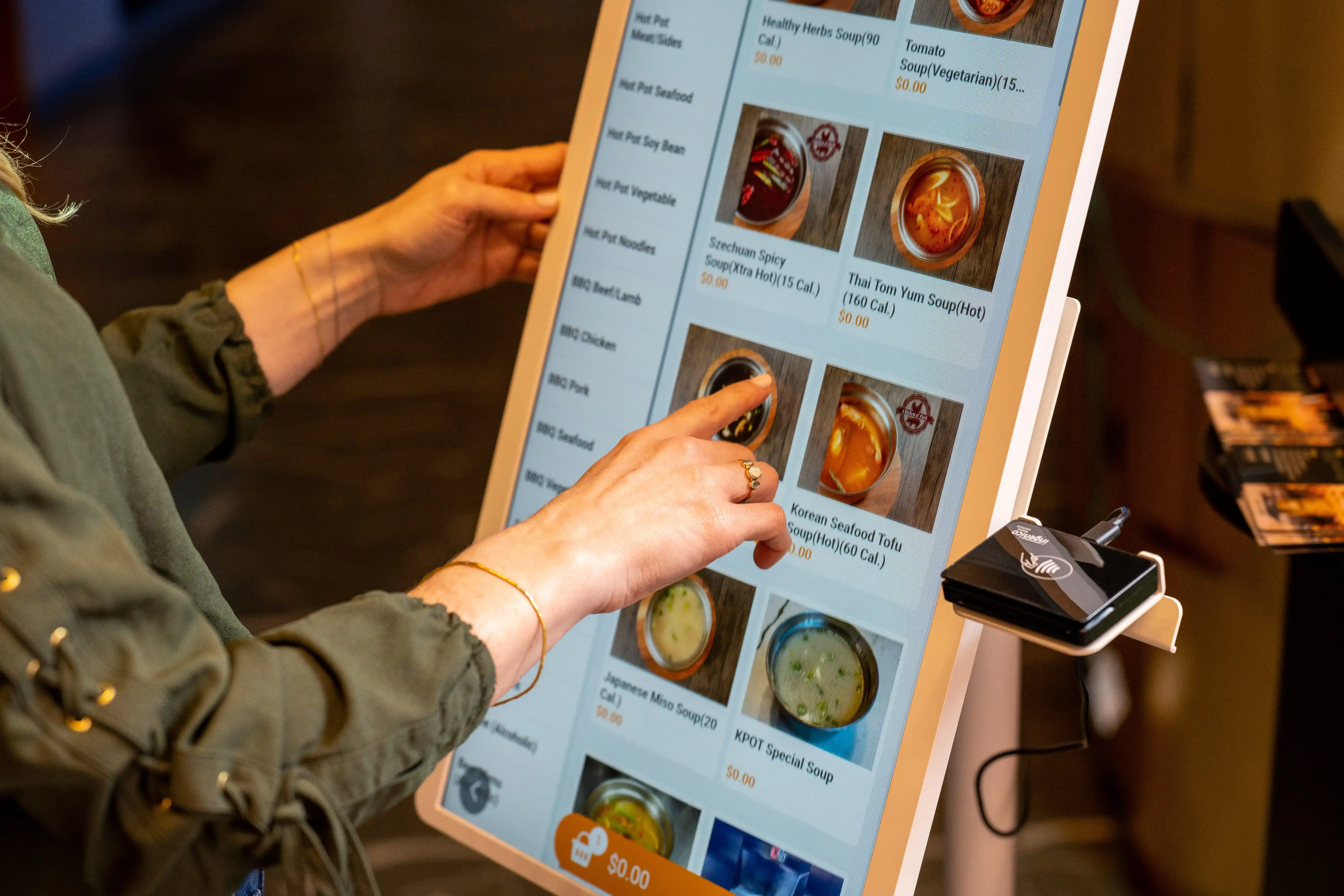 A self ordering kiosk is a touchscreen ordering station that lets guests place and pay for orders on their own. Instead of ordering through a cashier, guests use the screen to browse the menu, choose items, add customizations, review their order, and complete payment.